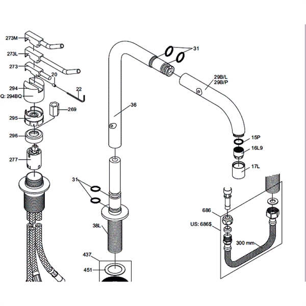 Reservedele for Vola 590 - Bagtud VR36 i mat sort