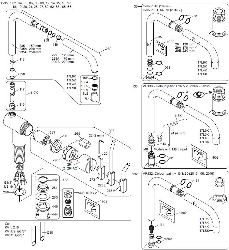Passer til modeller efter 2005 - se tegning for årgange som sættet passer til. - må kun bruges til køkkenarmatur