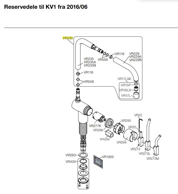 Reservedele til Vola KV1 - Bagtud i Børstet krom KV1 Ny fra 2016/06 og frem