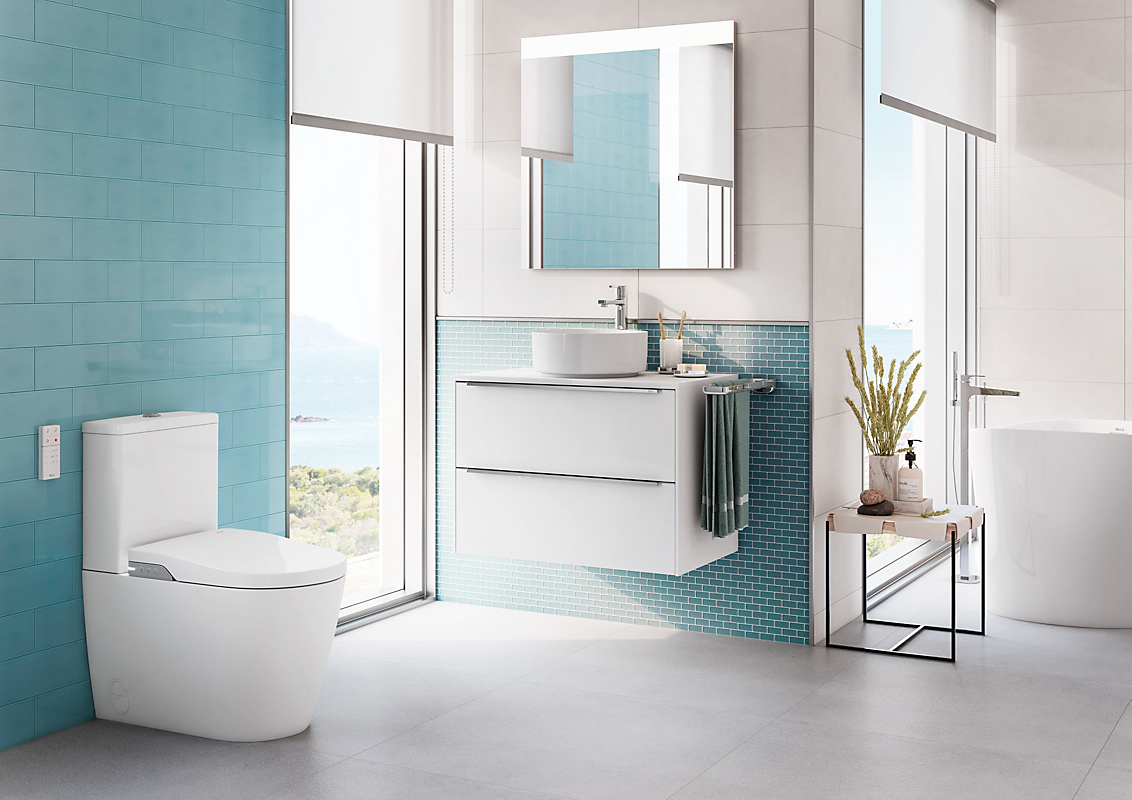 ROCA INSPIRA gulvstående smarttoilet med rimless skylleteknik.