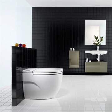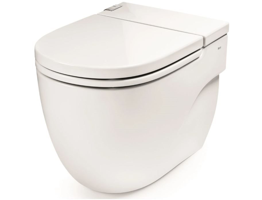 Roca in-tank gulvstående toilet med integreret cisterne. Med I-beslag. Med softclose toiletsæde. Kræver strøm