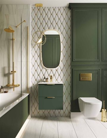 Møblernes enkle design i kombination med moderne farver giver serien en unik karakter på badeværelset.