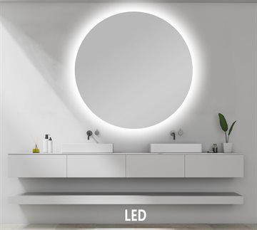 Rundt spejl med LED backlight. Spejlet er lavet af belgisk AGC MIROX eco glas.