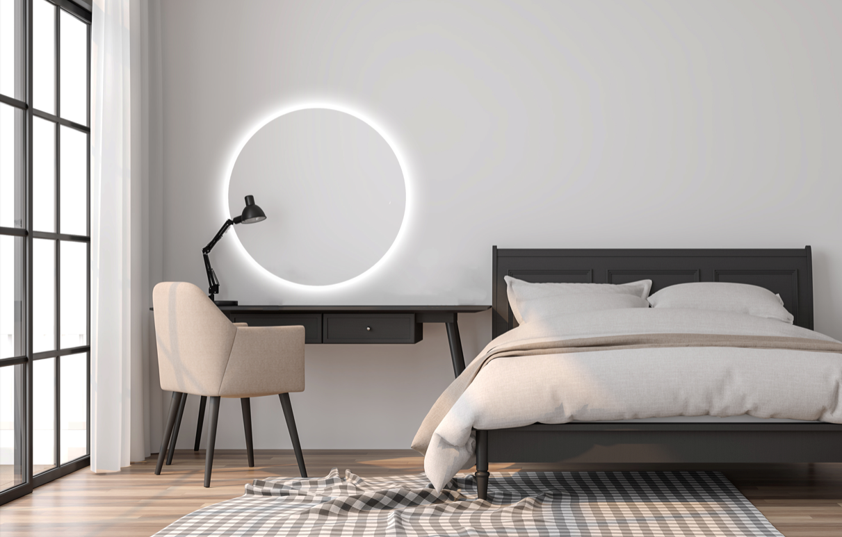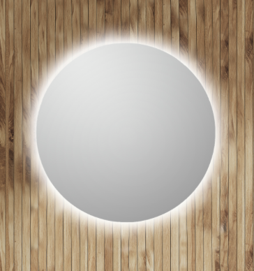 Rundt spejl med LED backlight. Spejlet er lavet af belgisk AGC MIROX eco glas.