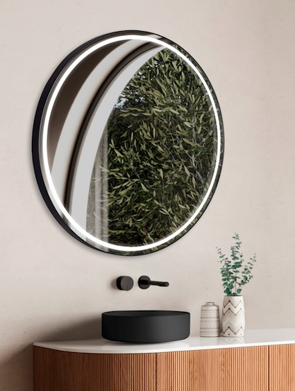 SALMA-3 rundt spejl med LED-lys og matsort Alu ramme, 4000K, IP44, 19W, CII, 128 LED/M
