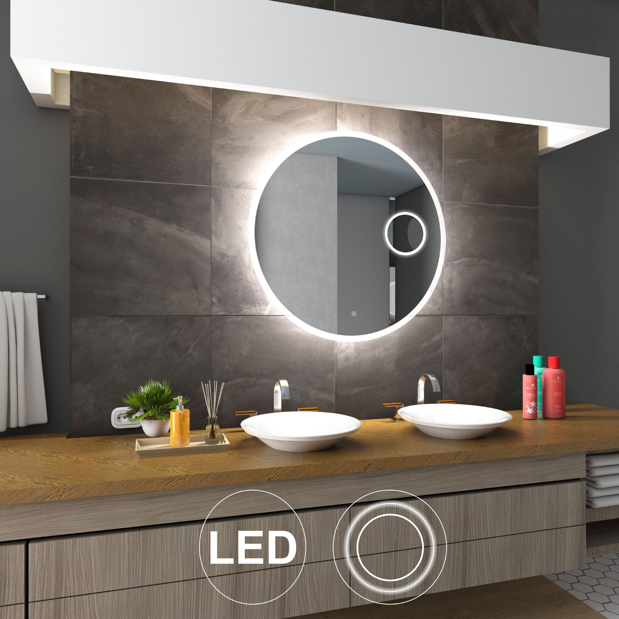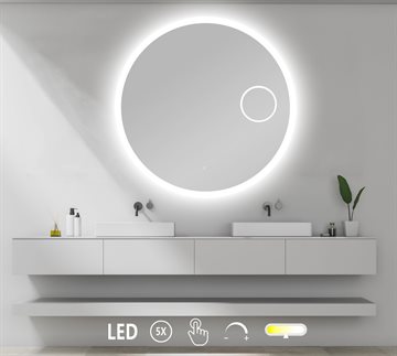 Sandra rundt spejl med LED front & backlight, kosmetikspejl og lysstyring - 110 cm