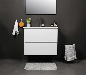 De moderne og kompakte sæt er med en smal dybde velegnet til det mindre badeværelse. Det pladsbesparende møbelsæt giver en større bevægelsesfrihed i badeværelset og øger rumfornemmelsen.