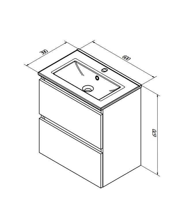 Håndvasken er med hanehul til vandhanen. Designet er slimline, der giver et let udtryk. Badvasken er fremstillet i porcelæn, der giver dig en glat og rengøringsvenlig overflade.