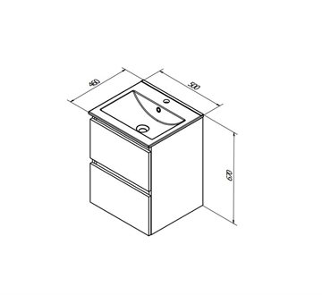 Håndvasken er med hanehul til vandhanen. Designet er slimline, der giver et let udtryk. Badvasken er fremstillet i porcelæn, der giver dig en glat og rengøringsvenlig overflade.