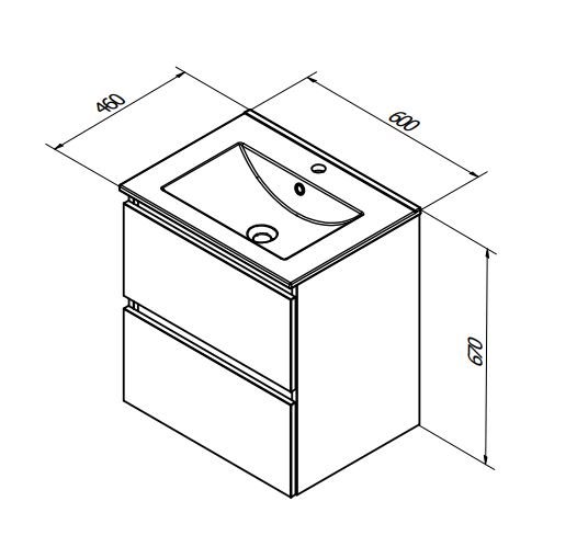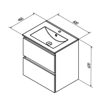 Håndvasken er med hanehul til vandhanen. Designet er slimline, der giver et let udtryk. Badvasken er fremstillet i porcelæn, der giver dig en glat og rengøringsvenlig overflade.