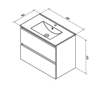 Håndvasken er med hanehul til vandhanen. Designet er slimline, der giver et let udtryk. Badvasken er fremstillet i porcelæn, der giver dig en glat og rengøringsvenlig overflade.