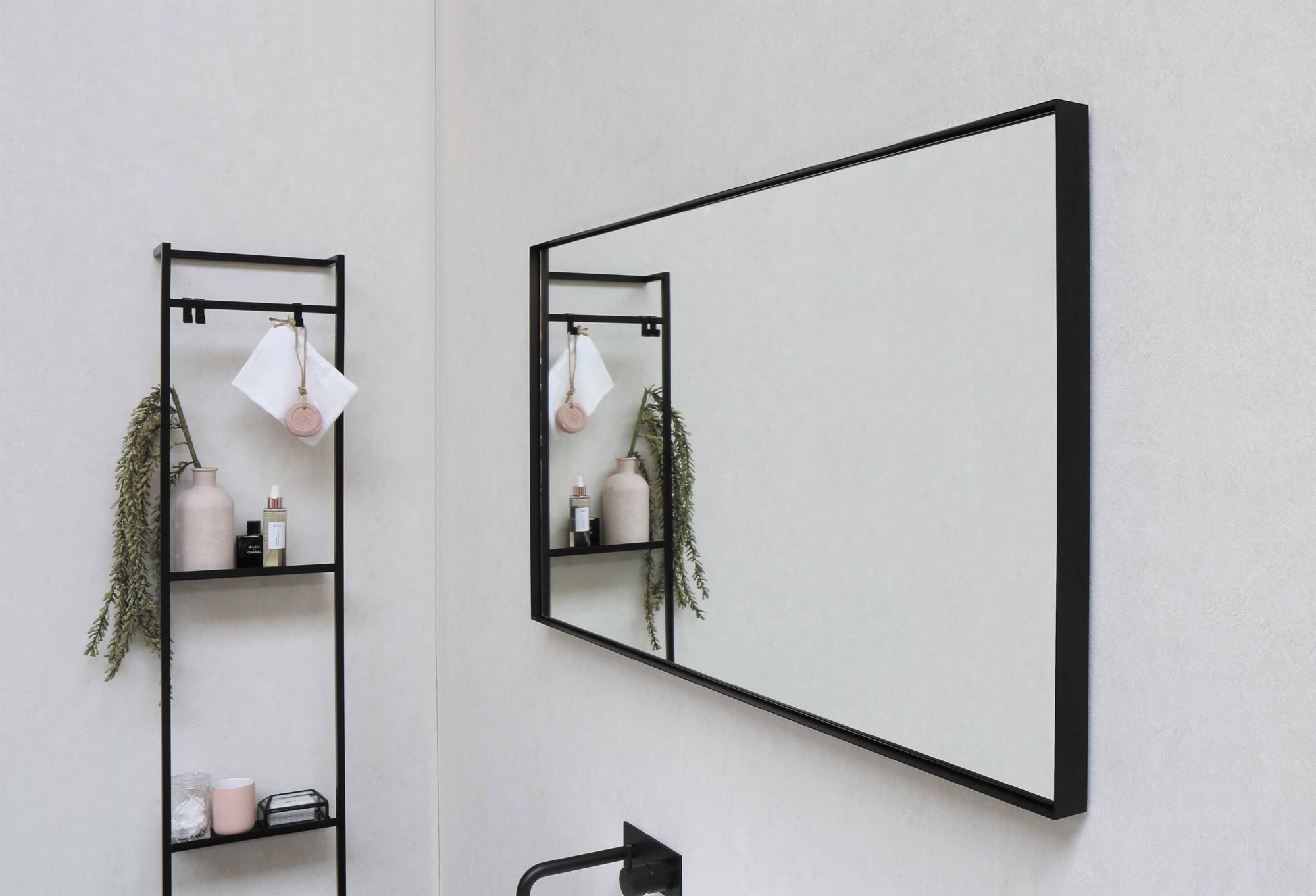 Sanibell Basicline Framed spejl uden lys i matsort aluramme 100x60x5cm