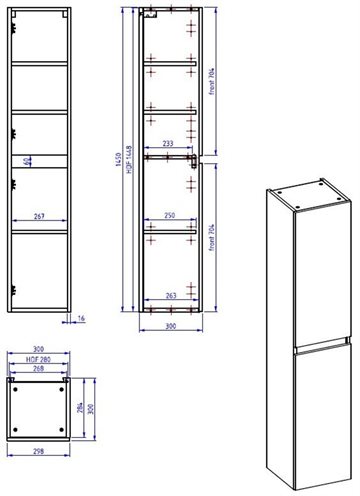 Sanibell Online højskab 145x30x30 cm Bardolino eg, leveres usamlet
