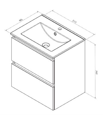 Underskabet er med 2 skuffer og integreret greb, der med softclose lukker blidt uanset påvirkning. Skufferne er med masser af plads til håndklæder og alt andet du har brug for at have lige ved hånden. Den stilrene porcelænsvask giver møblet et let og smalt udseende. Øverste skuffe har udskæring så der er plads til vandlåsen samt praktisk inddeling så alt hele tiden ligger på sin plads.