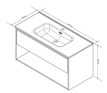 Det moderne vægmonterede underskab er kendetegnet ved sin store rummelighed grundet den høje skuffe og en åben hylde, og der er rigeligt med plads til opbevaring af håndklæder, hårtørre og andet udstyr. Skuffen er fuldt udtrækkelige og med softclose. Takket være møblets dæmpersystem lukker skuffen stille og roligt. Vaskeskabet er ligeledes uden greb, som skaber rene linjer og et smukt tidløs design - Grebsfri minimalisme.