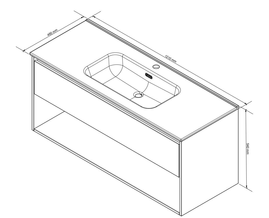 Det moderne vægmonterede underskab er kendetegnet ved sin store rummelighed grundet den høje skuffe og en åben hylde, og der er rigeligt med plads til opbevaring af håndklæder, hårtørre og andet udstyr. Skuffen er fuldt udtrækkelige og med softclose. Takket være møblets dæmpersystem lukker skuffen stille og roligt. Vaskeskabet er ligeledes uden greb, som skaber rene linjer og et smukt tidløs design - Grebsfri minimalisme.