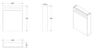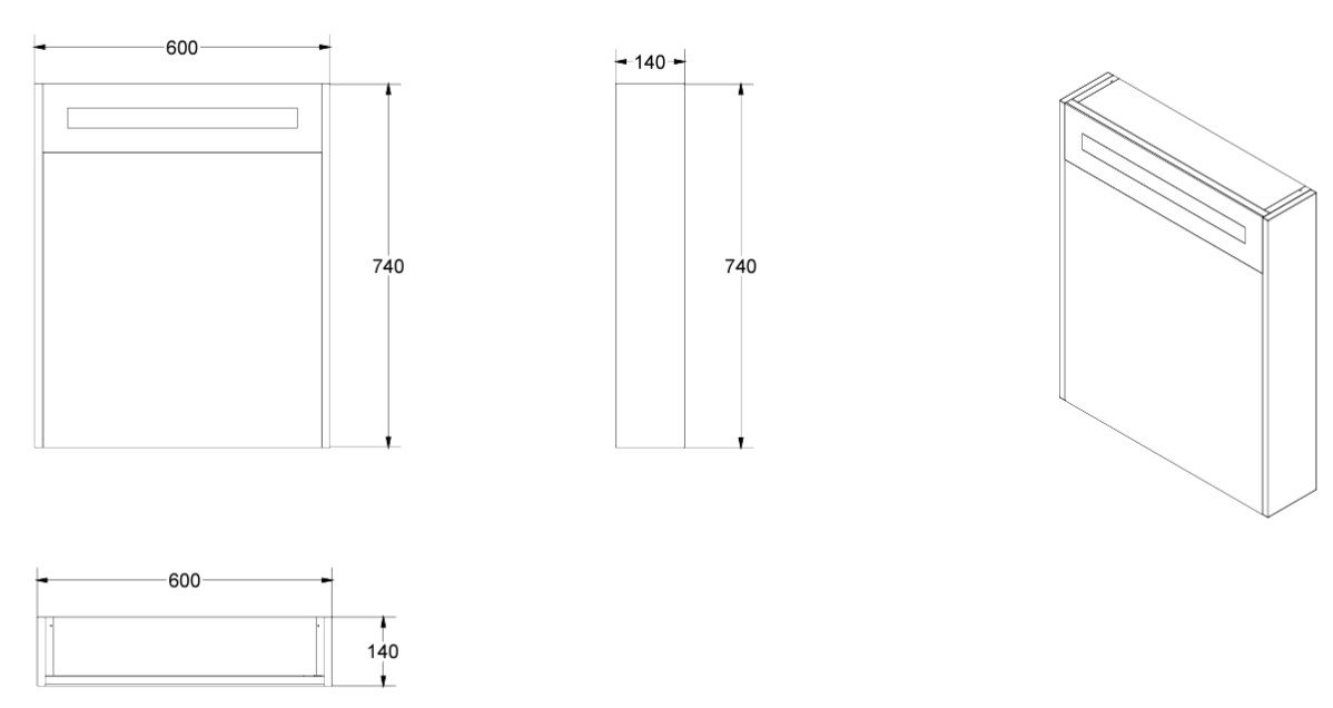 Mål (B x D x H): 600 x 140 x 740mm