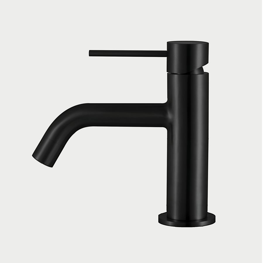 Primy Steel Voyage Shadow vandhane til håndvask med buet tud uden bundventil i sort.