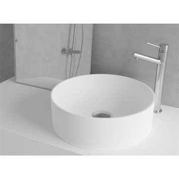 Primy R2 fritstående håndvask Ø38x12 cm i Hvid Solid-surface