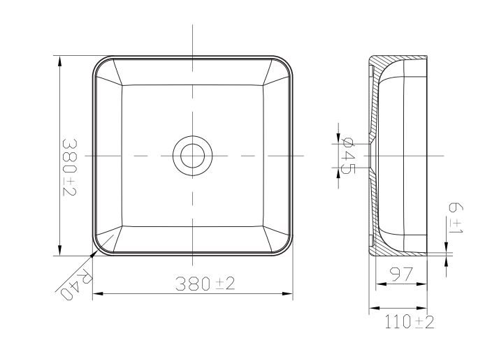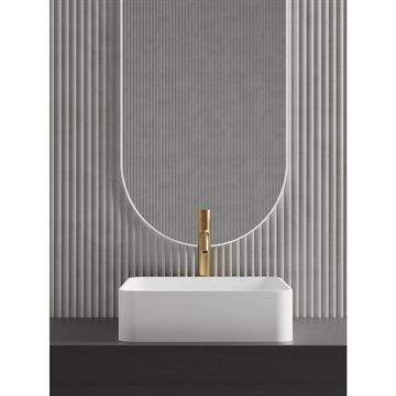 Et afrundet men en kvadratisk form med blødt, minimalistisk formsprog. Hver enkelt håndvask er håndlavet med et unikt udtryk.