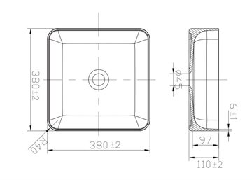 En flot firkantet vaske bowle i stringent og enkelt design. Den firkantede Solid surface badeværelsesvask placeres ovenpå bordplade eller møbel, hvor servantevasken fremstår elegant i sit tidløse design.