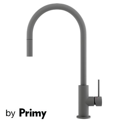 Primy Steel Accent Scrap køkkenarmatur med udtrækstud i mat mørkegrå - svingtuden kan dreje 360 grader.