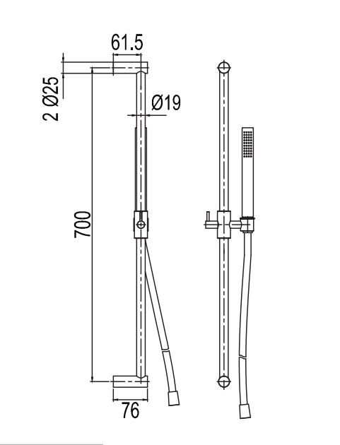 Stilren model med rund krop og buet tud, der med sit stilrene design vil fremstå elegant gennem årtier. Den cylindriske håndbruser afgiver rigeligt med behagelige og omsluttende stråler.