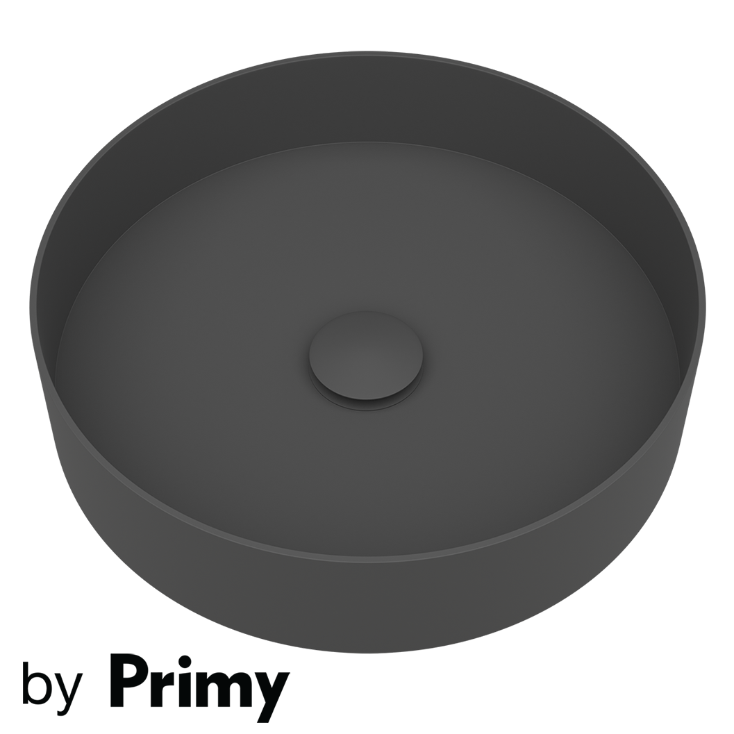 Primy Rare R Scrap fritstående håndvask Ø 375mm er fremstillet i massivt rustfrit stål og belagt med en PVD farve i mat mørkegrå.