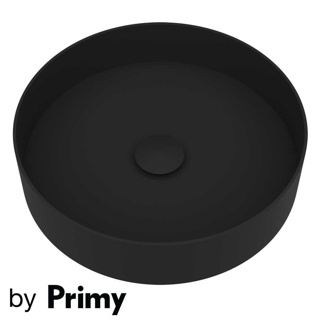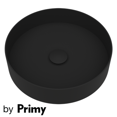 Primy Rare R Coal fritstående håndvask Ø 375mm er fremstillet i massivt rustfrit stål og belagt med en PVD farve i mat sort.