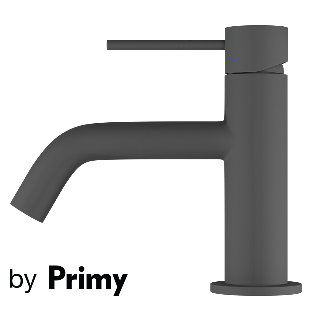 Primy Steel Voyage Scrap vandhane til håndvask med buet tud uden bundventil (mat mørkegrå).