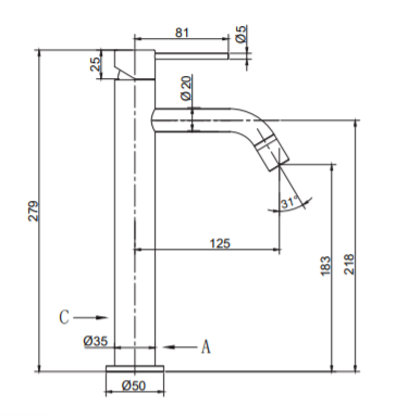 Særdeles velegnet servantearmatur til fritstående håndvaske.