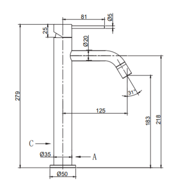Scandtap Steel Voyage High Håndvaskarmatur i rustfrit stål