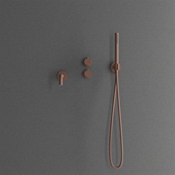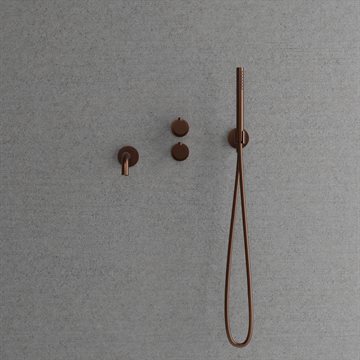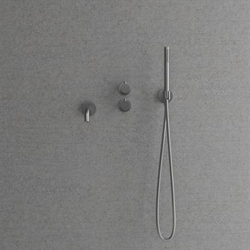 Kar/brusearmaturet består en cylindrisk håndbruser der levere en behagelig strøm af vand med bred spredning og en 182 mm kartud til fyldning af badekarret. Betjeningen af indbygningsbrusearmaturet er enkel og logisk. På det ene af grebene bestemmes temperaturen mens der på det andet vælges om vandet skal ledes ud af den kartuden eller ud af håndbruseren.