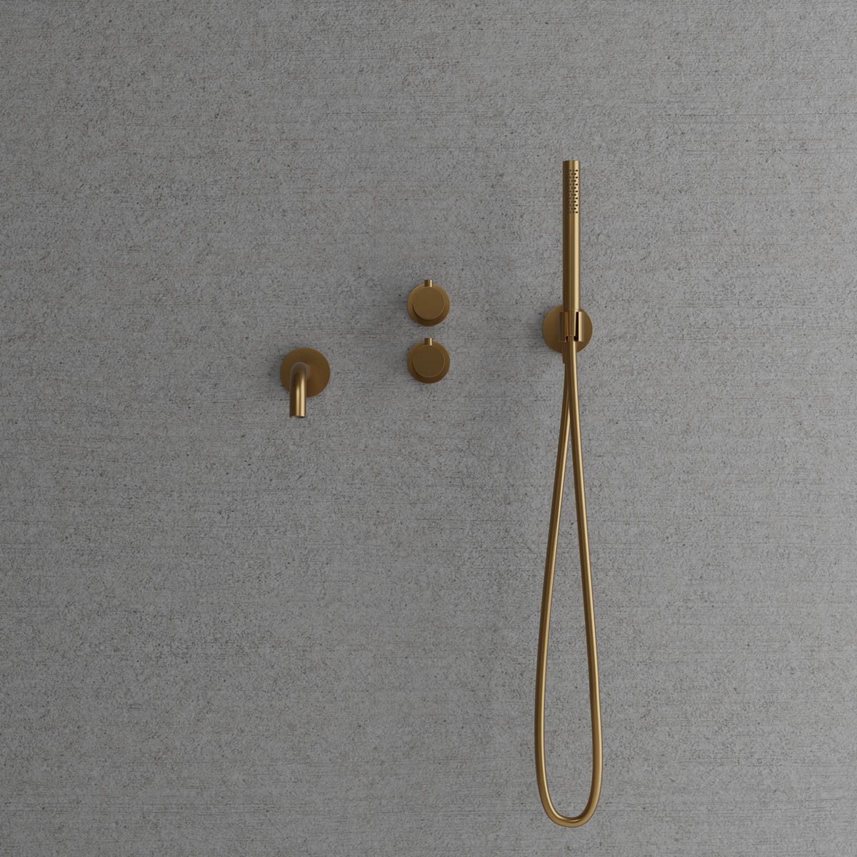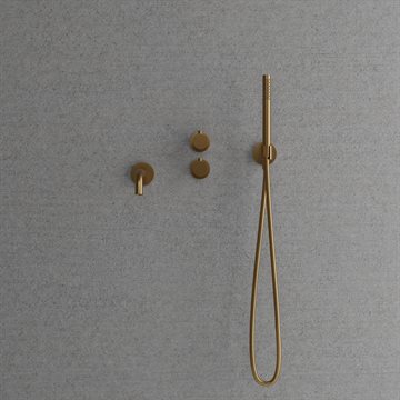Kar/brusearmaturet består en cylindrisk håndbruser der levere en behagelig strøm af vand med bred spredning og en 182 mm kartud til fyldning af badekarret. Betjeningen af indbygningsbrusearmaturet er enkel og logisk. På det ene af grebene bestemmes temperaturen mens der på det andet vælges om vandet skal ledes ud af den kartuden eller ud af håndbruseren.