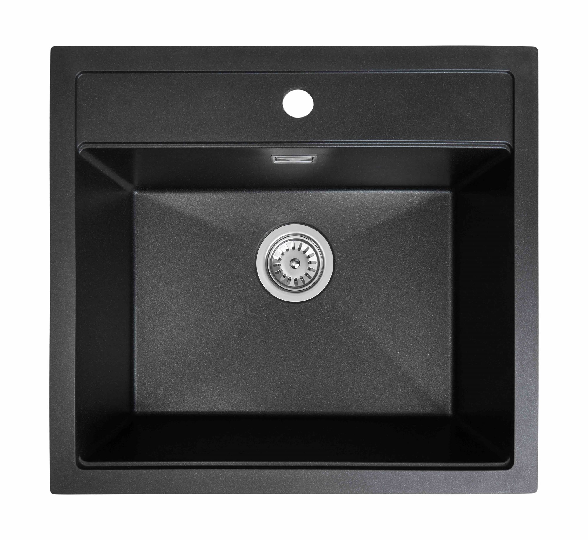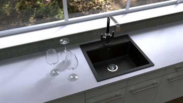 Secher Aalborg 500 BK1 køkkenvask 56x51 cm t/nedfældning, sort granitek