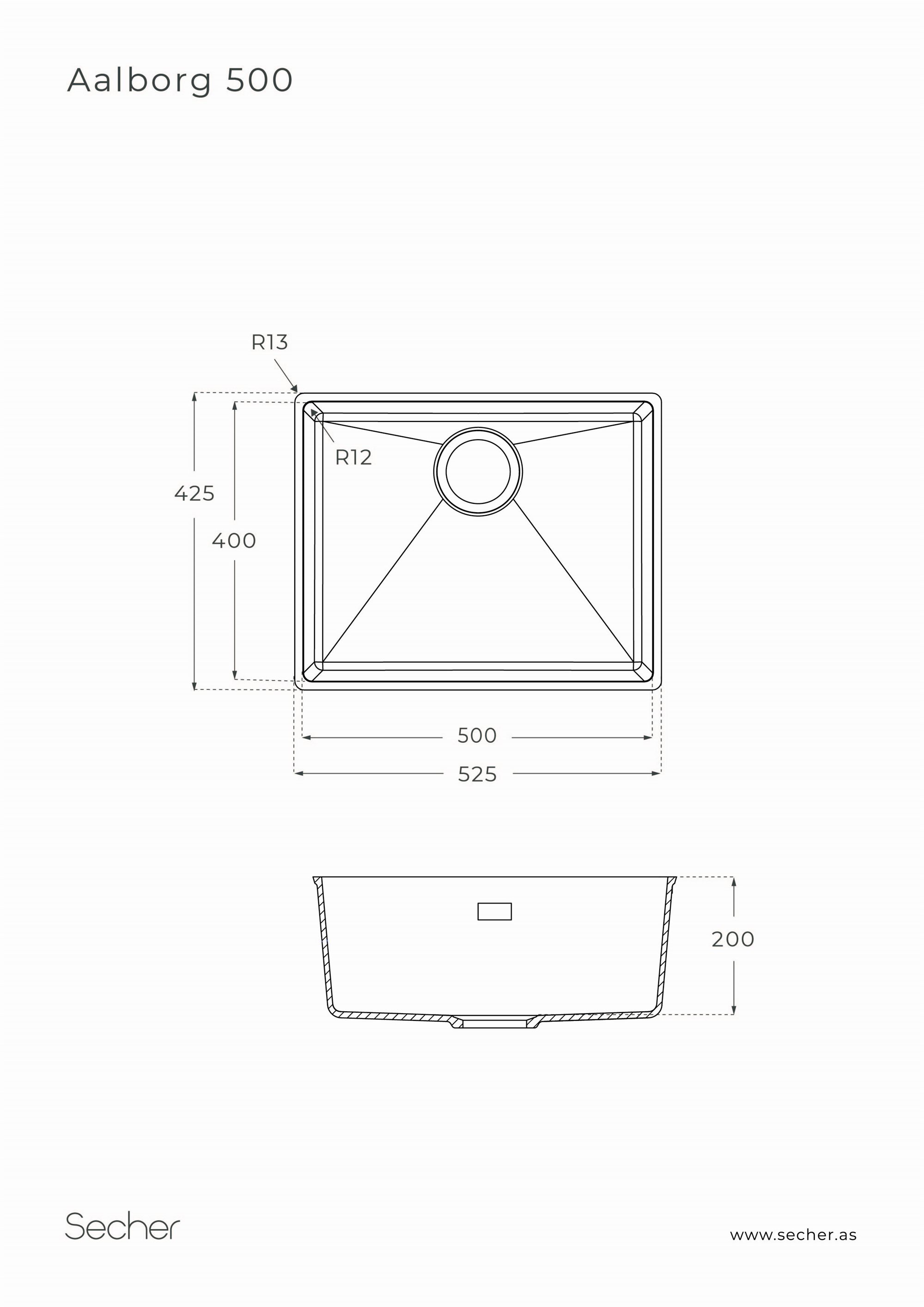 Secher Aalborg 500 køkkenvask til underlimning, sort granitek