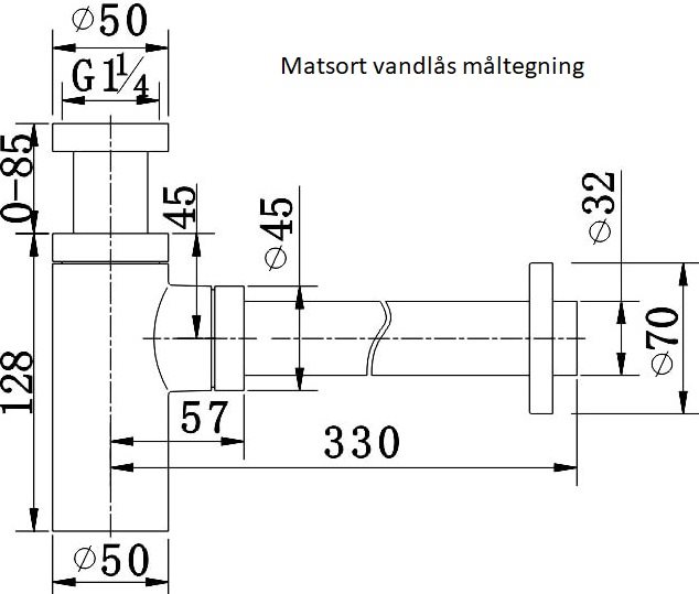 Denne design vandlås til under håndvask er højdejusterbar 0-85 mm og har en vægafstand på 330 mm, kan vandlåsen nemt indstilles, så den tilpasses din montering.