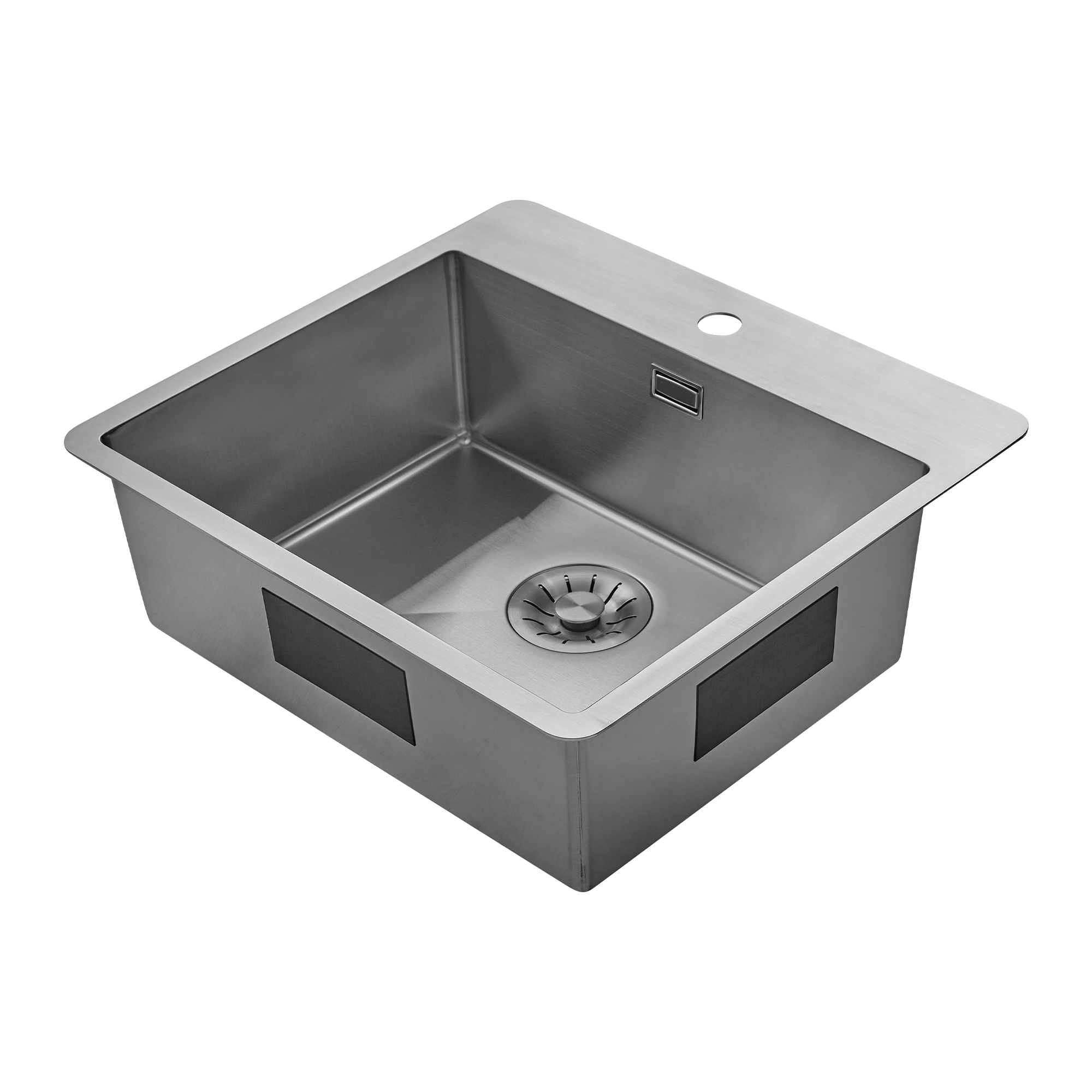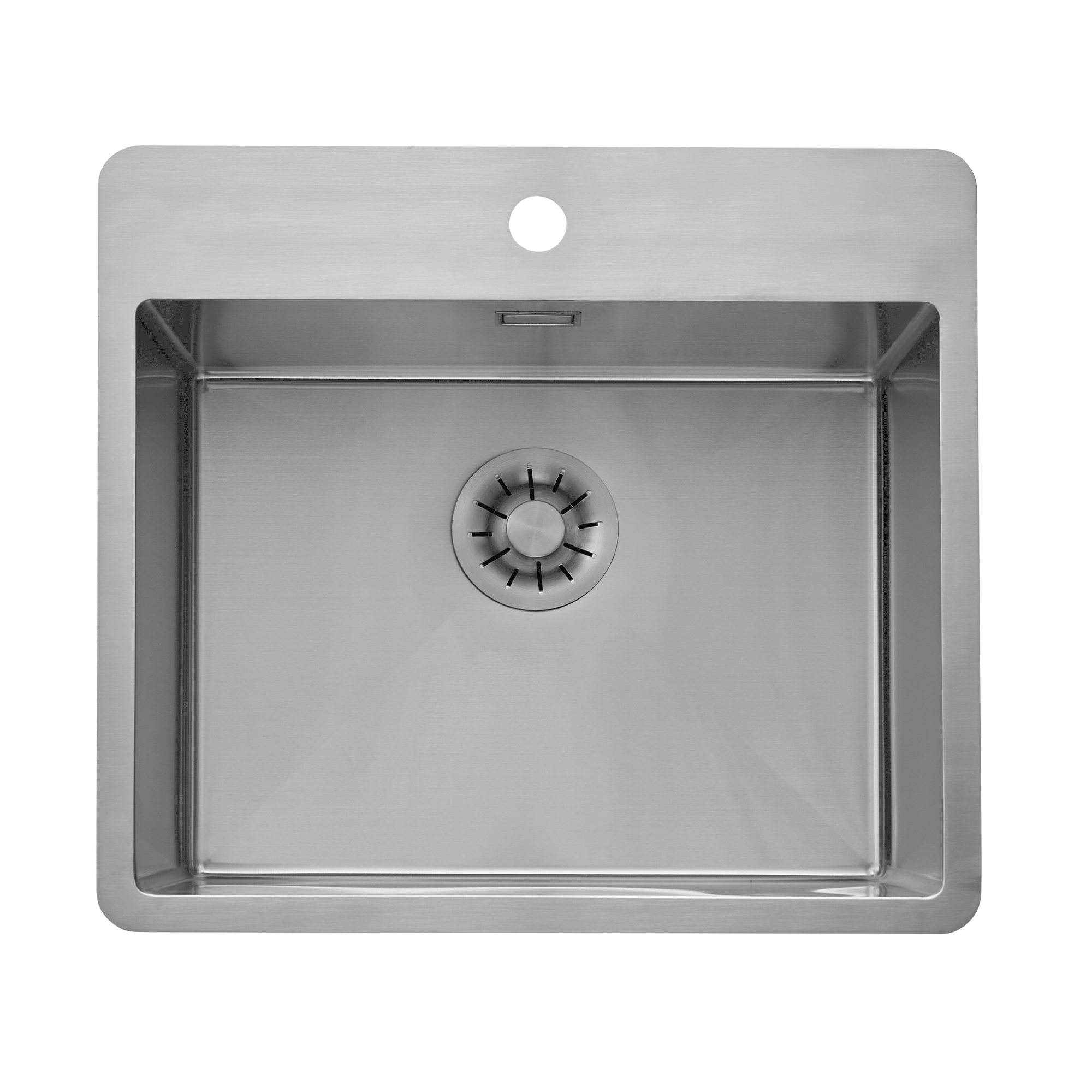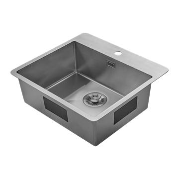 Secher Fredericia 500 BK2 køkkenvask 550 x 505 mm til nedfældning med bagkant til hanehul, Rustfrit stål
