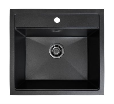 Secher køkkenvask 56x51 cm sort granitek med Gunmetal af-og overløbssæt