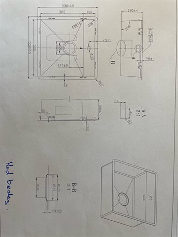 Secher Kolding 500 BK1 MB køkkenvask 550 x 530 mm. Rustfrit stål