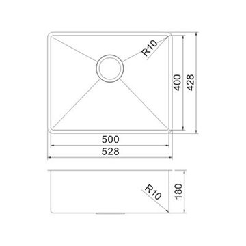 Secher Middelfart 500 køkkenvask 528 x 428 mm til plan-& underlimning, messing PVD