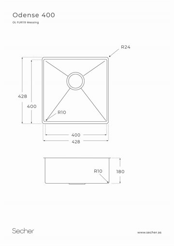 Secher Odense 400B køkkenvask 40x40 cm til underlimning - Bruneret messing