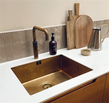Secher Odense 500 BK2 køkkenvask 54x50 cm med hanehul og overløb til nedfældning & planlimning - Bruneret messing natur