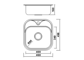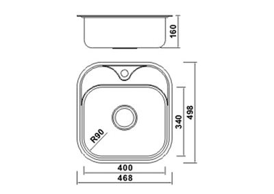 Secher Ribe 400 BK1 køkkenvask 468 x 498 mm i Rustfrit stål