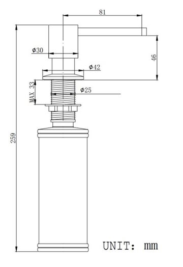 Sæbedispenseren er fremstillet i metal og belagt med mat sort farve. Designet er enkelt og med afrundede former, som står godt til de fleste køkkenvandhaner og vaske.