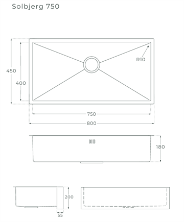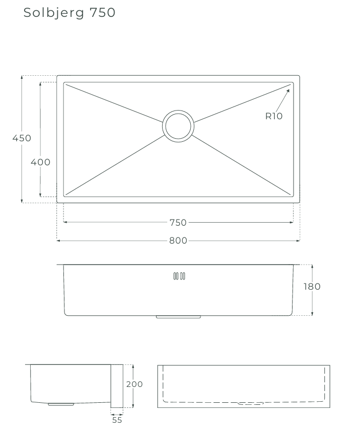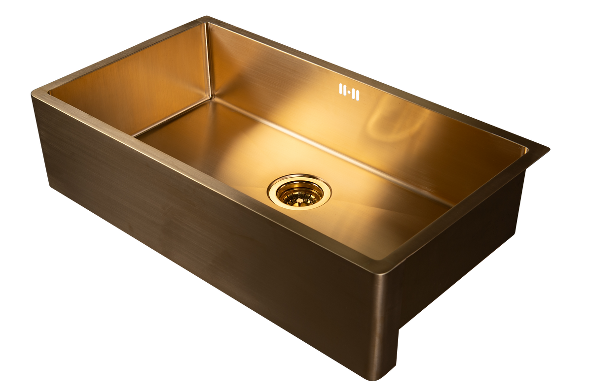 Secher Solbjerg 750 køkkenvask 800 x 450 mm med massiv forkant, Børstet messing natur