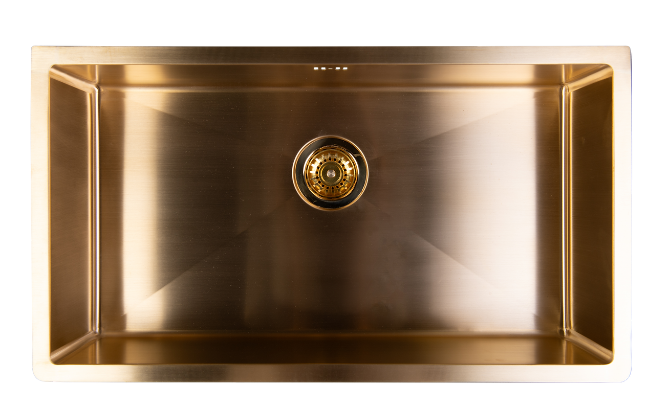 Secher Solbjerg 750 køkkenvask 800 x 450 mm med massiv forkant til nedfældning & planlimning - Børstet messing
