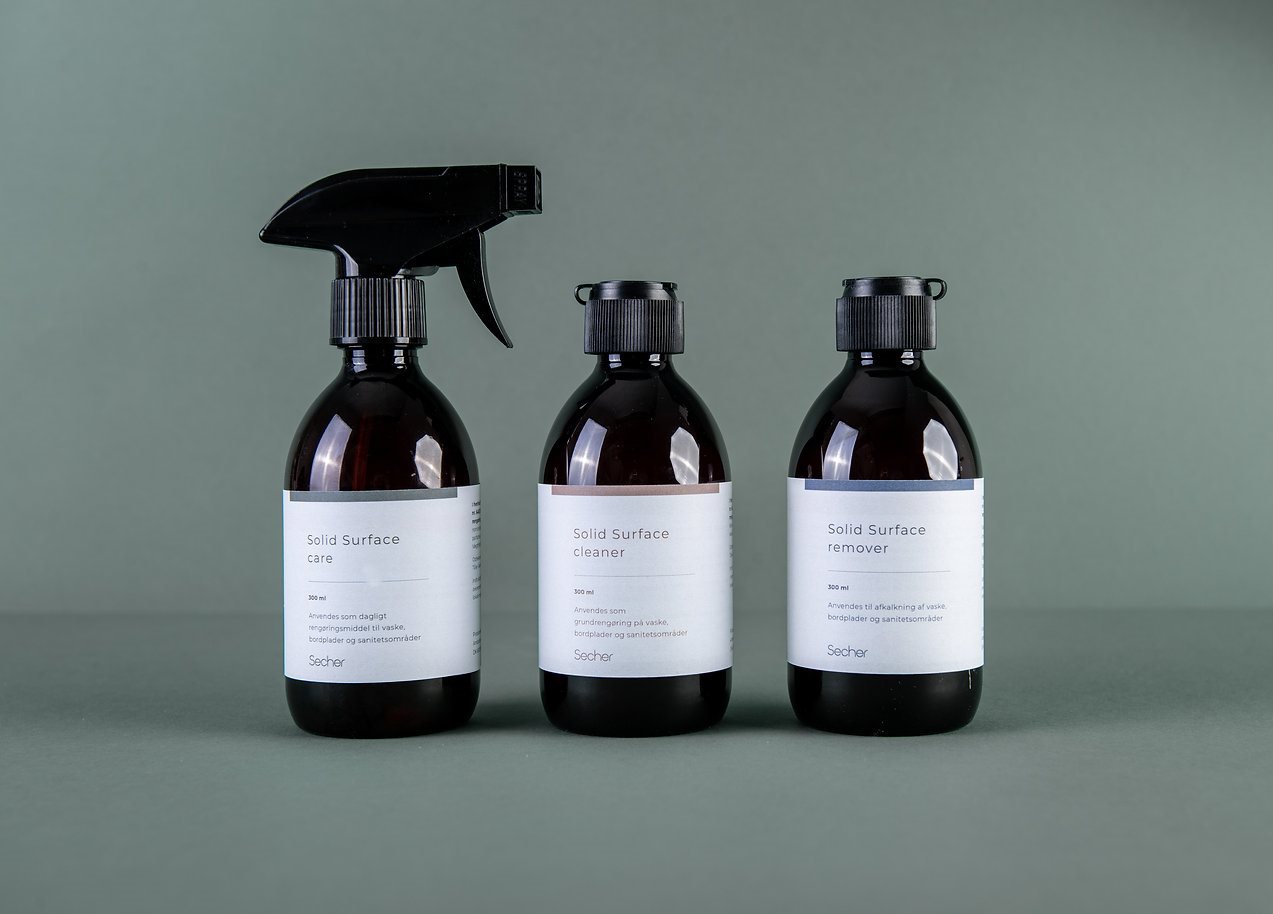 – Care, Cleaner og Remover som tilsammen udgør den optimale pleje for dit Solid Surface produkt.
