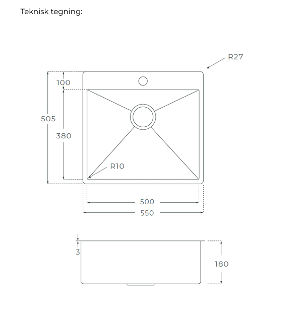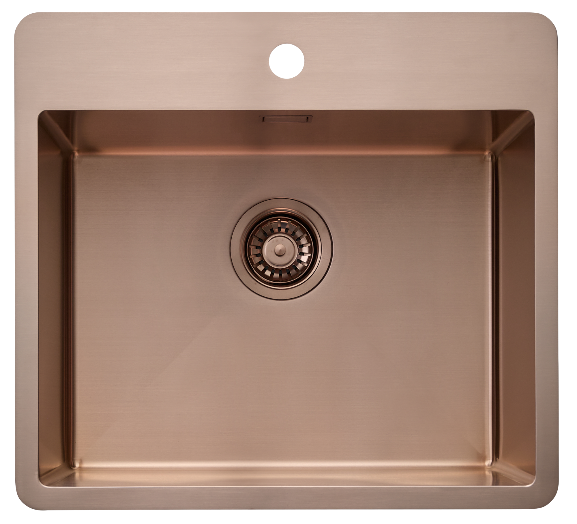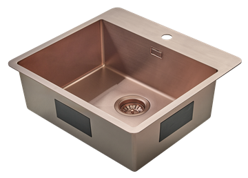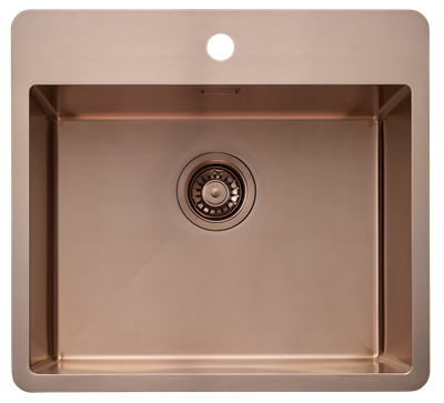 Secher Strib 500 BK2 køkkenvask 550 x 505 mm til nedfældning med bagkant til hanehul, PVD kobber
