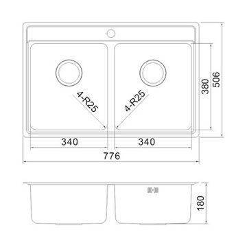 Secher Vejle 340/340 BK1 dobbelt køkkenvask 776 x 506 mm i Rustfrit stål